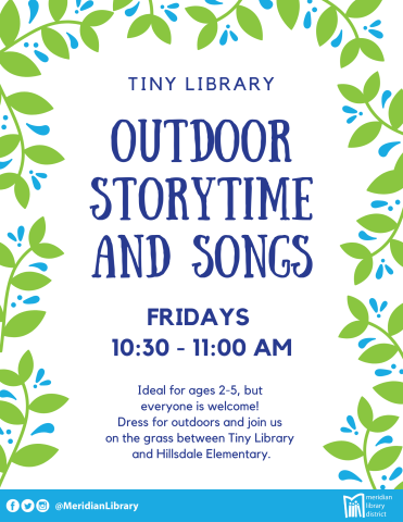 Dress for the outdoors and join us at the Tiny Library for outdoor storytime!